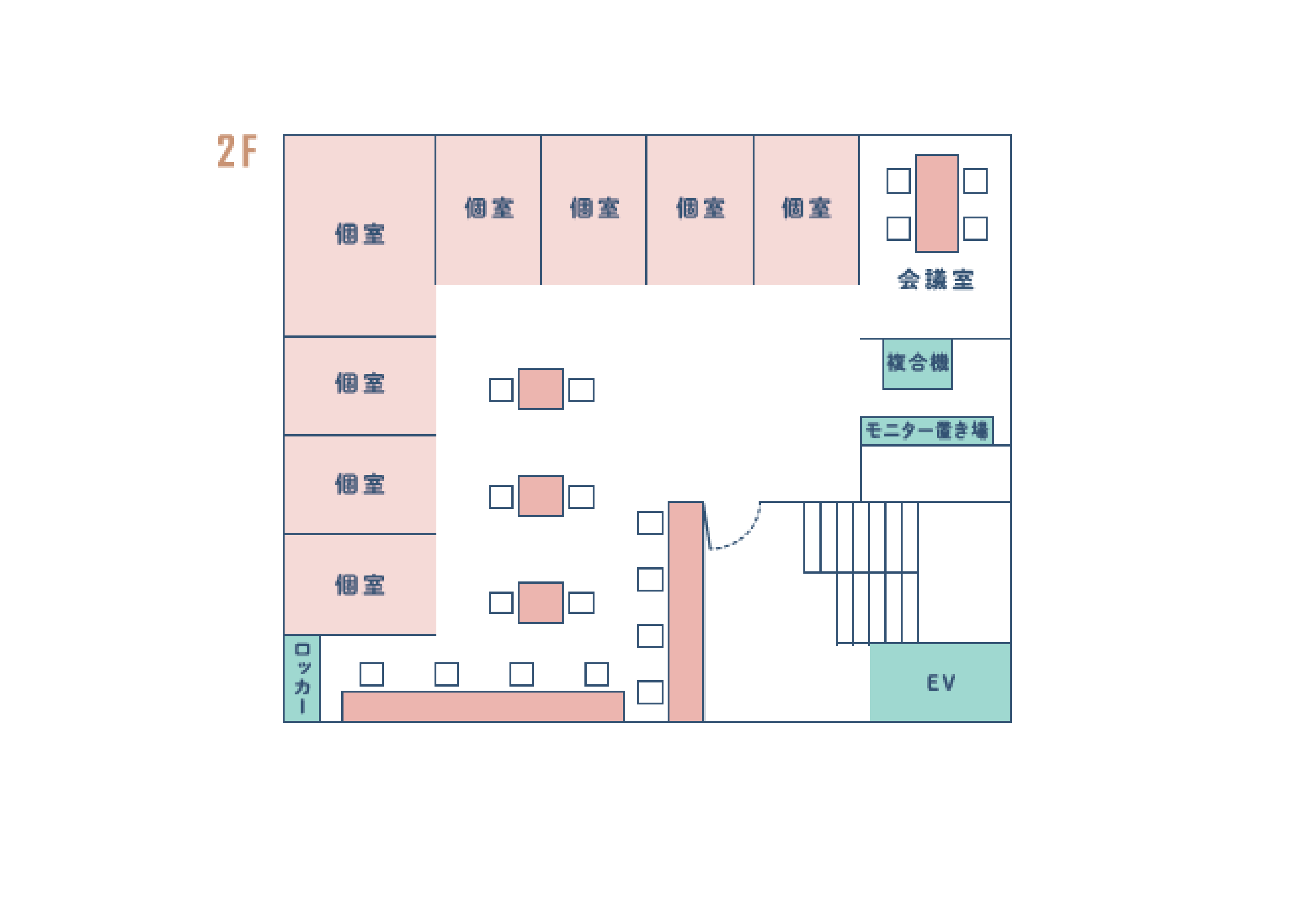 - 2F :24時間365日(会員のみ) 1F :月〜金 10:00~18:00 (土日曜祝日、年末年始休み)